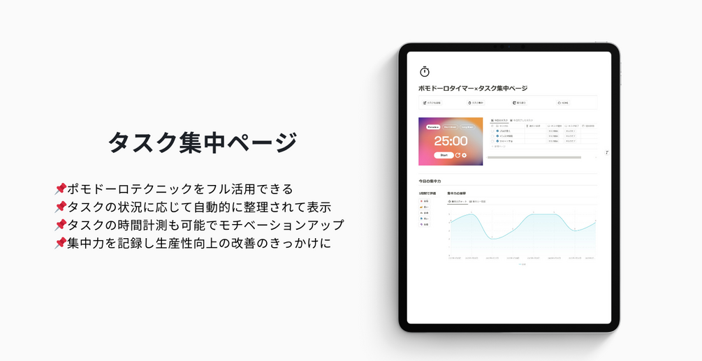 ・タスク集中ページに、「BGM」「今日の宣言」項目を追加。BGMでモチベーションを上げて今日やることを明確にすることで作業効率を更にアップできます。