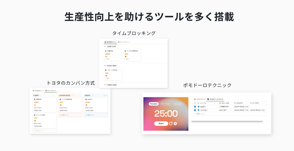 Notionとの相性が抜群で、今までのタスク管理とは一線を画すテンプレートになっています。